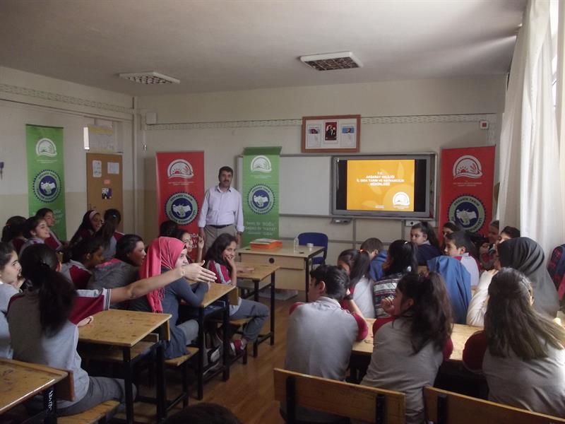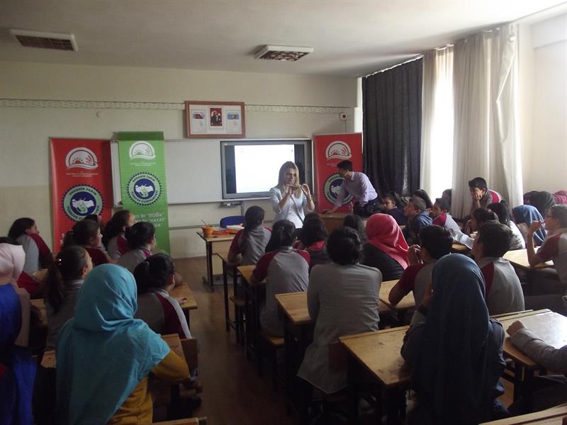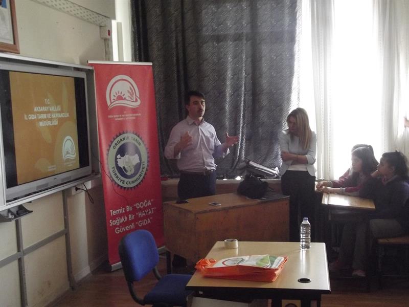 Bitkisel Üretim ve Bitki Sağlığı Şubesi tarafından yürütülen proje çalışmaları çerçevesinde İl Milli Eğitim Müdürlüğü ile beraber Aksaray merkezde bulunan Gazipaşa, Hasandağı ve Mehmetçik Ortaokullarında 31 Mayıs, 1 ve 2 Haziran 2016 tarihlerinde organik tarım, organik tarımın doğal kaynaklar ve çevreye etkileri, biyoçeşitliliğin önemi, kimyasal ilaç ve gübrelerin zararları, organik ürünlerin nasıl tanınacağı organik tarım ile geleneksel tarımın farkları gibi konularda birer saat süren 3 eğitim yapıldı. Şube Müdürü Şeref OKTAY’ la beraber ziraat mühendisleri Faruk GÜNGÖR ve Aynur TANGÜR’ ün gerçekleştirdiği eğitimlerde çocuklara bez çanta, şapka, geri dönüşümlü malzemeden imal edilmiş kalem ve karaçam tohumu dağıtıldı. Tohumların nasıl yetiştirileceğinin de anlatıldığı eğitimlere birinci sınıftan sekizinci sınıfa kadar bütün sınıflarda okuyan toplam 200 öğrenci katıldı.