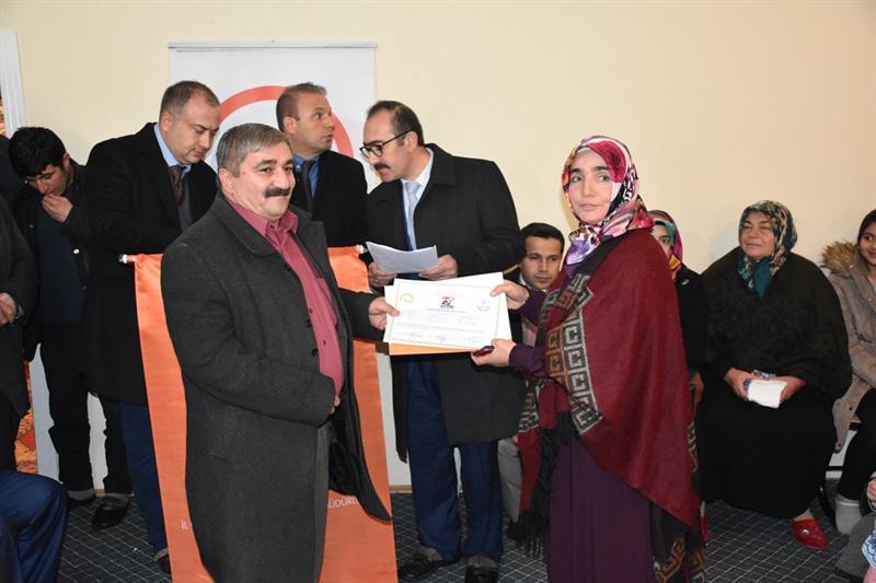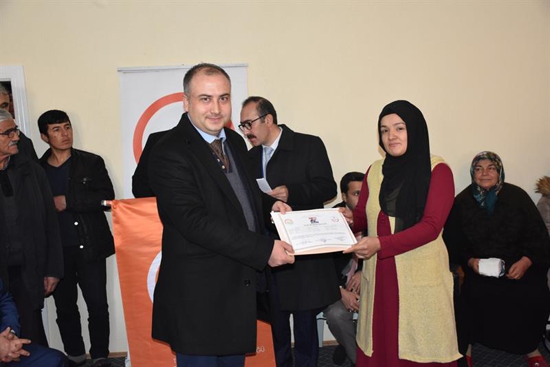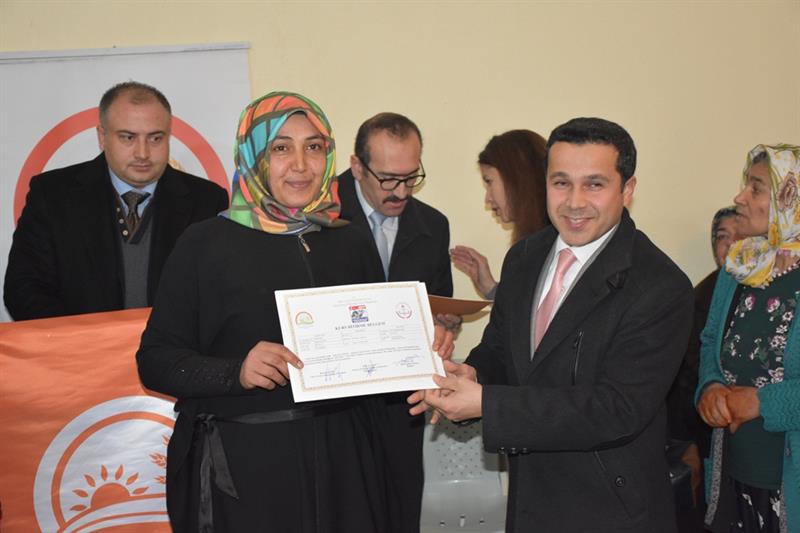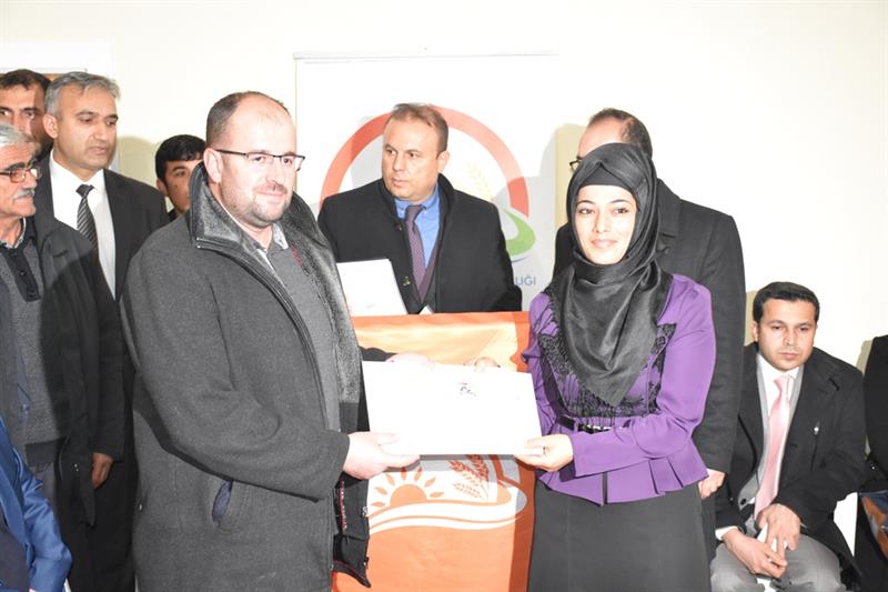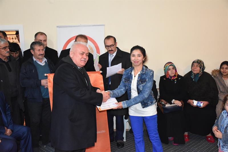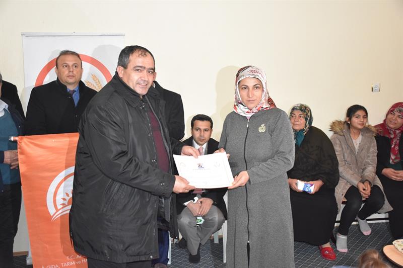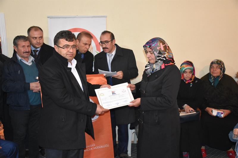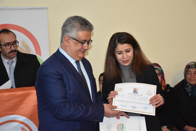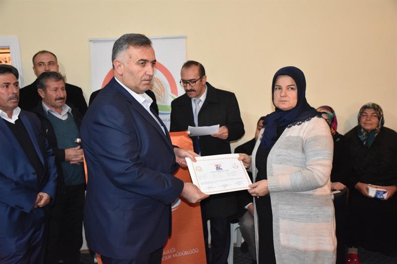 Konuşmaların ardından "Damızlık Süt Sığırı Yetiştiriciliği" Kursuna katılan kadın kursiyerlere sertifikaları Vali Aykut Pekmez, Gıda, Tarım ve Hayvancılık İl Müdürü Bestami Zabun, Çalışma ve İş Kurumu Müdürü Mahmut Akkuş, Ziraat Odası Başkanı Emin Koçak, Koyun Keçi Yetiştiricileri Birliği Başkanı Mahmut Aktürk, Süt Birliği Başkanı Esat Zengin, Damızlık Süt Sığırı Yetiştiricileri Birliği Başkanı Bekir Kayan, Halk Eğitim Merkezi Müdürü Azmi Arı ve diğer davetliler tarafından verildi.