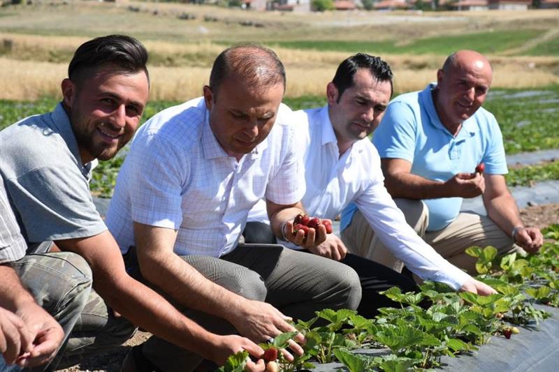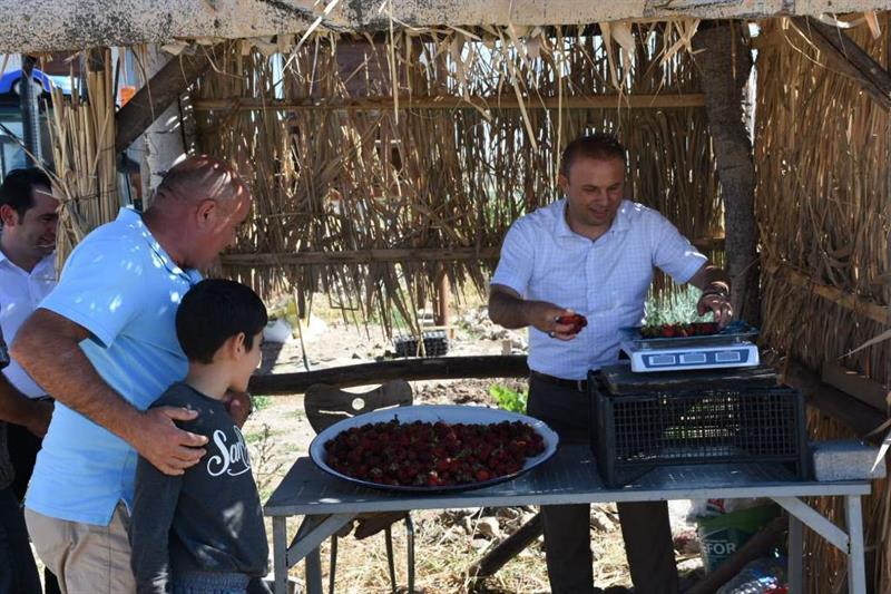 TERCAN ile Genç Çiftçi Projesi hibe desteği alarak çilek bahçesi tesisi kuran Haydar KOCA isimli çiftçilerimizi ziyaret ederek onlarla