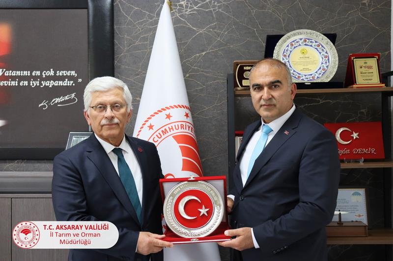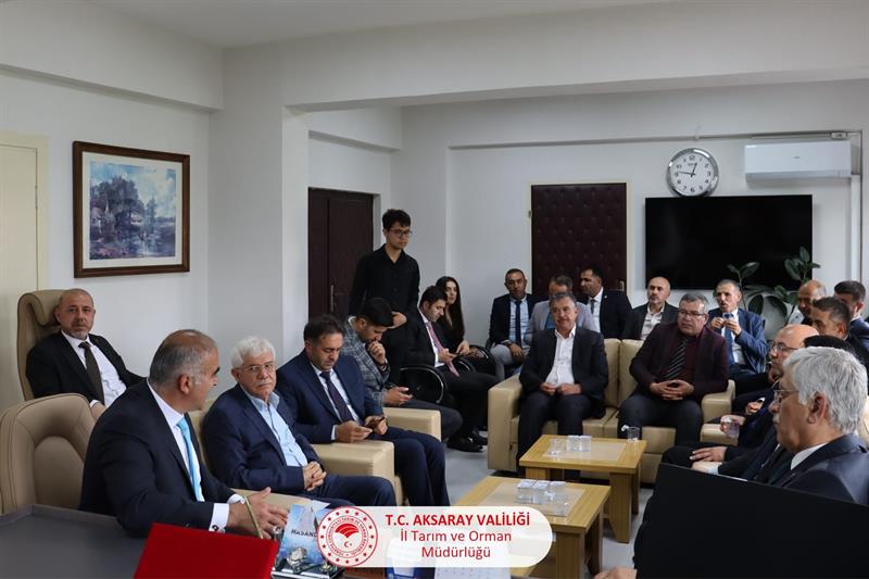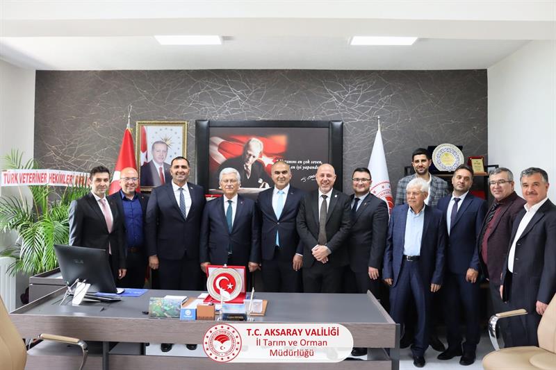 Türk Veteriner Hekimler Birliği Başkanı Sayın Ali EROĞLU ve Merkez Konseyi üyeleri, 19. Dönem Aksaray Milletvekilimiz Veteriner Hekim Sayın İsmet GÜR ile İç Anadolu Bölgesi illerinin Veteriner Hekimler Odası başkanları, İl Tarım ve Orman Müdürümüz Sayın Nejdet DEMİR’i makamında ziyaret ettiler.