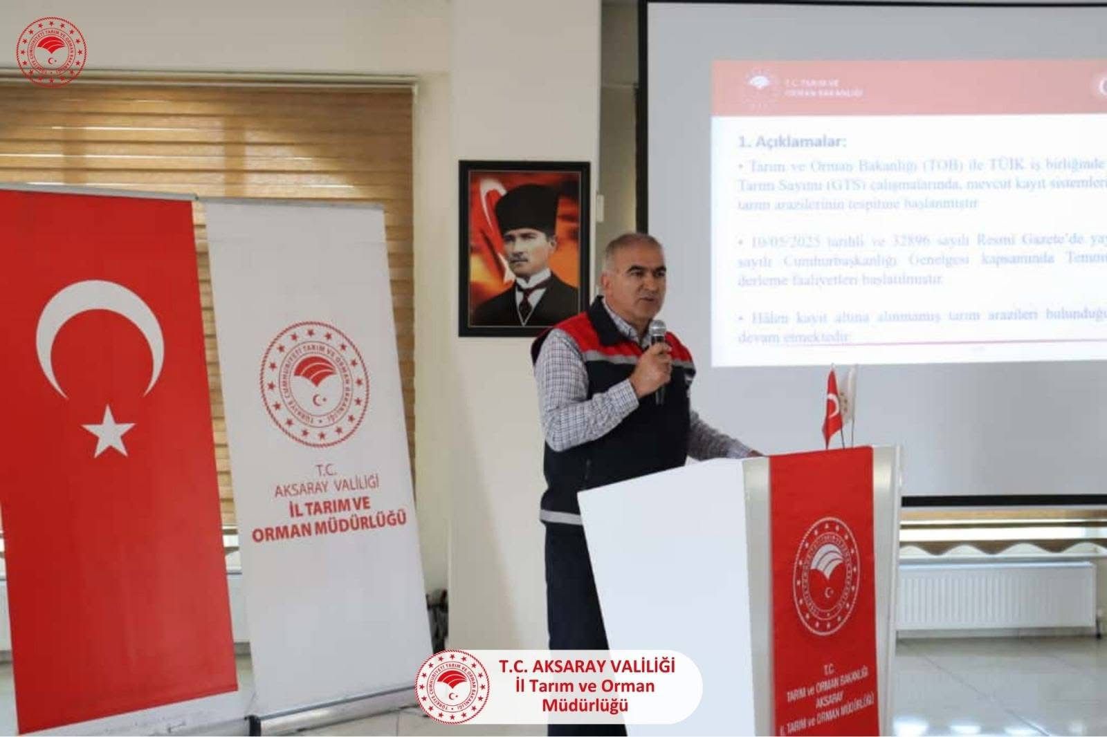 Sayın Vali Yardımcımız Hakan KILINÇKAYA başkanlığında Ziraat Odası toplantı salonunda Muhtarlarımıza, Genel Tarım Sayımı hazırlıkları kapsamında Çiftçi Kayıt Sisteminde (ÇKS) yer almayan tarım arazilerinin tespiti için İl Tarım ve Orman Müdürümüz Sayın Nejdet DEMİR'in sunumları ile bilgilendirme toplantısı düzenlendi.